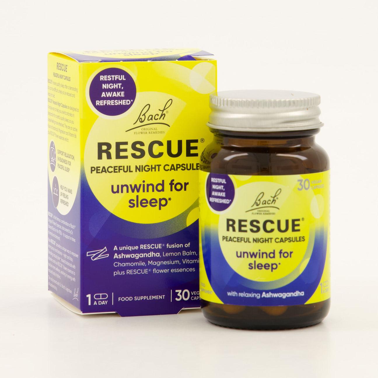 Bach Rescue Peaceful Night Capsules are specially formulated to help calm your mind and support a restful, quality night’s sleep — so you can wake up feeling recharged and ready for the day ahead.