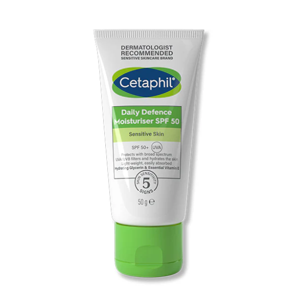 Cetaphil Daily Defence Cream SPF 50 is a lightweight daily face cream that delivers high UVA/UVB protection, helping shield skin from everyday sun exposure and the visible signs of photoaging.