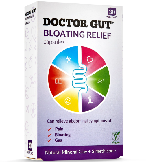 Doctor Gut Bloating Relief Capsules are vegan medical capsules designed to ease bloating, abdominal pain and discomfort, abdominal pressure, belching, and flatulence in adults and children aged 12 years and over.